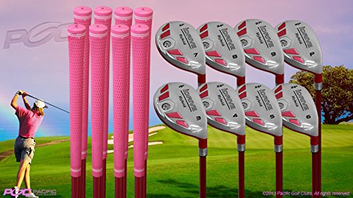 Feature: Senior Ladies iDrive Pink Golf Clubs All Hybrid Set 55+ Years Womens Right Handed Lady Full True Hybrid Complete Rescue Set which Includes: #3 4 5 6 7 8 9 +PW New Rescue Utility "Senior" Flex Club
